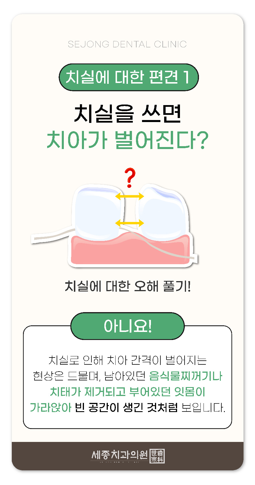 치실을 사용한다고 치아 사이가 벌어지지 않습니다.