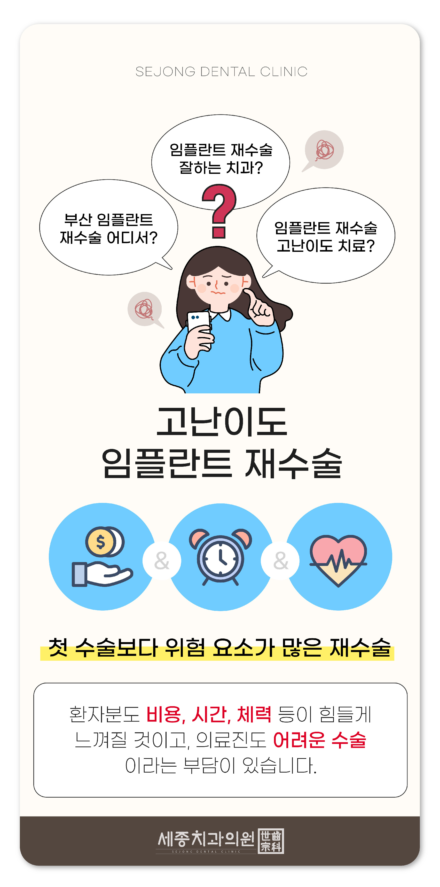 잇몸뼈를 다시 만들고 임플란트까지 다시 심는 임플란트 재수술 과정은 첫 임플란트 수술보다 난이도가 더 높은데요. 환자도 비용, 시간, 체력 등이 힘들게 느껴질 것이고, 의료진도 어려운 수술이라는 부담이 있습니다.