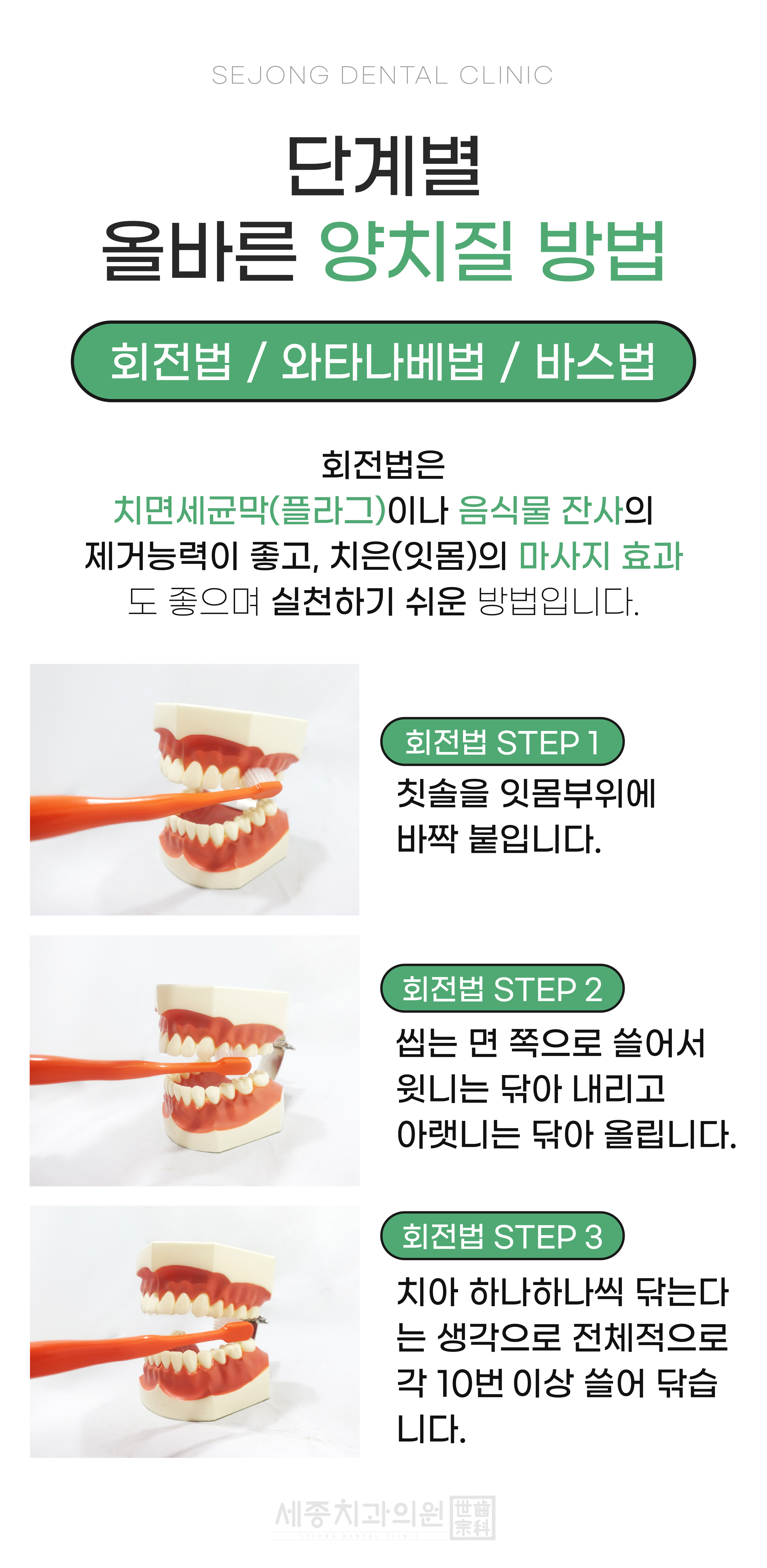 사람의 구강 환경과 상태에 따라 회전법, 와타나베법, 바스법 등 각기 다른 양치질 방법으로