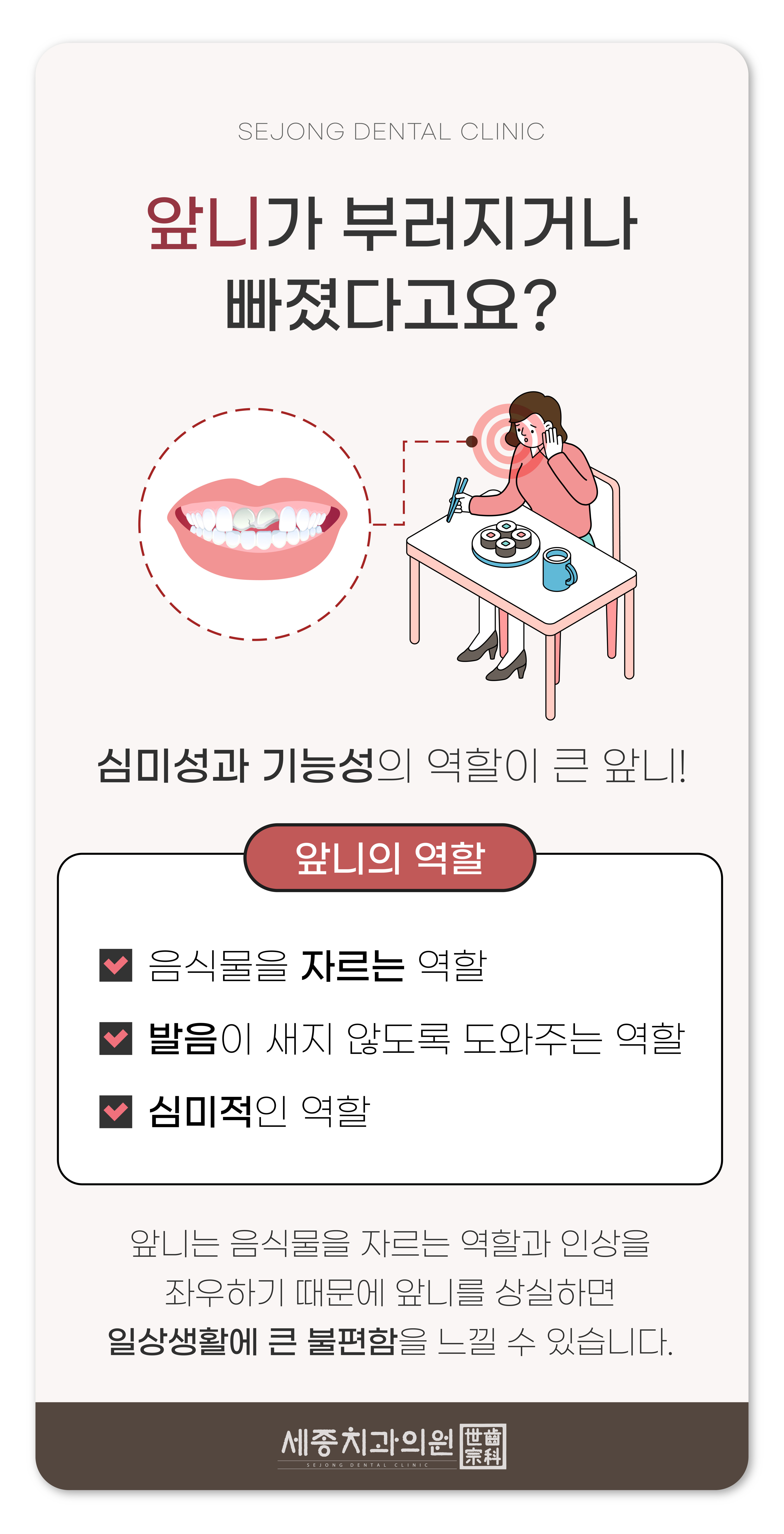 그리고 앞니는 겉으로 잘 보이는 치아이기 때문에 사람의 인상을 좌우하기도 합니다.
