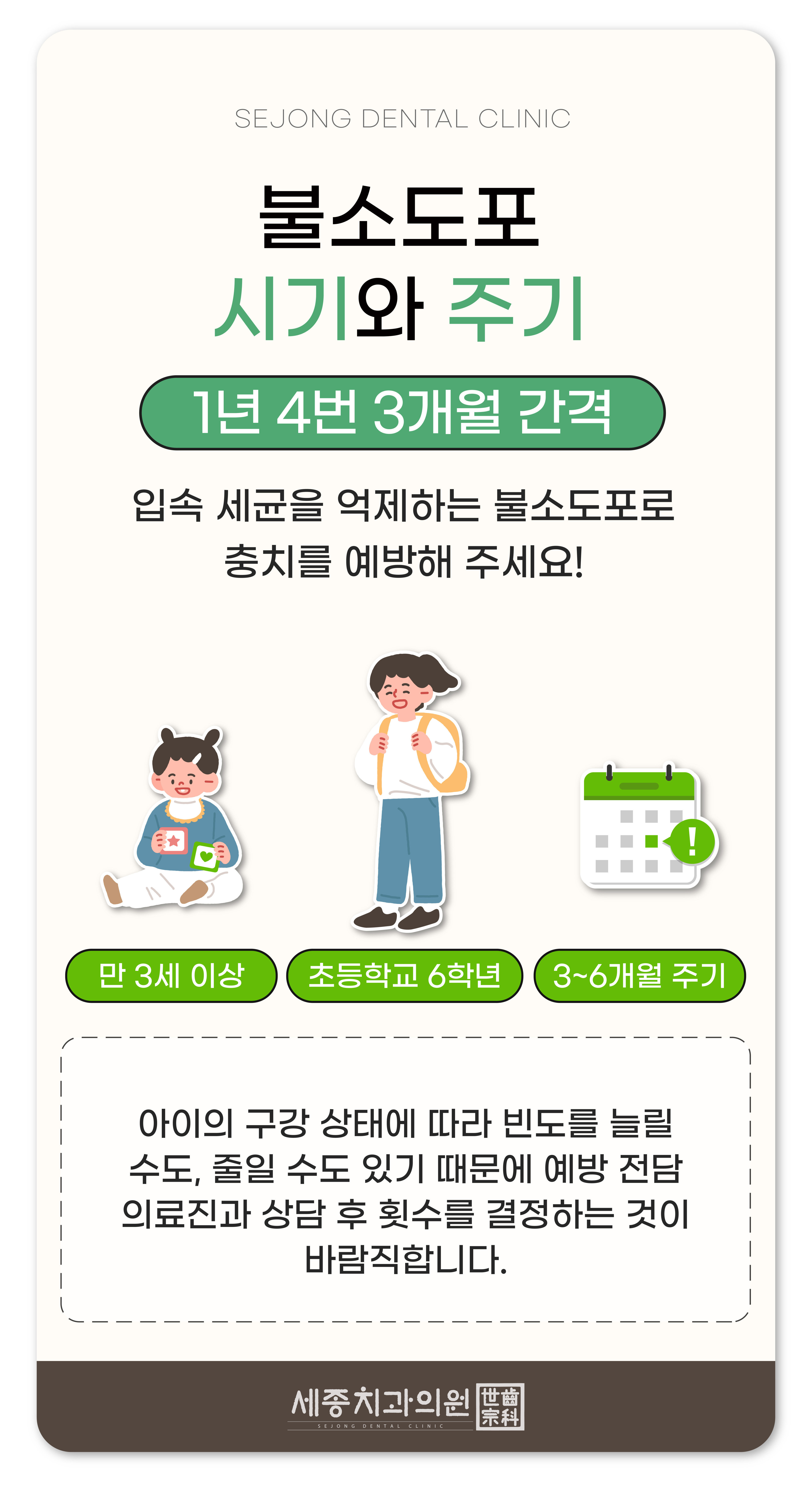 세종치과도 우리 아이들의 평생의 구강 건강을 위해 함께하겠습니다.