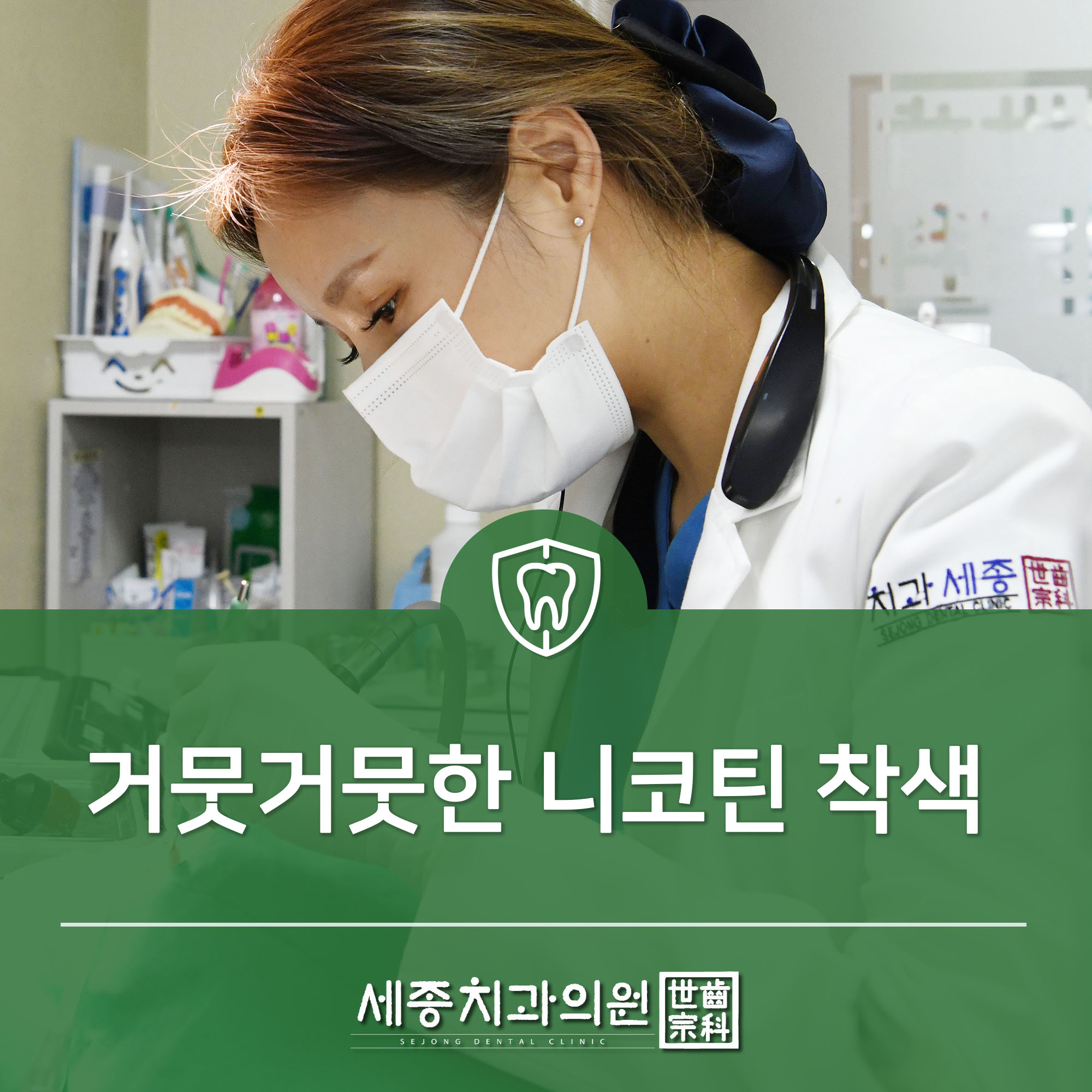 음식물 찌꺼기로 인해 발생하는 치석보다 니코틴이 치아 위에 착색됩니다.