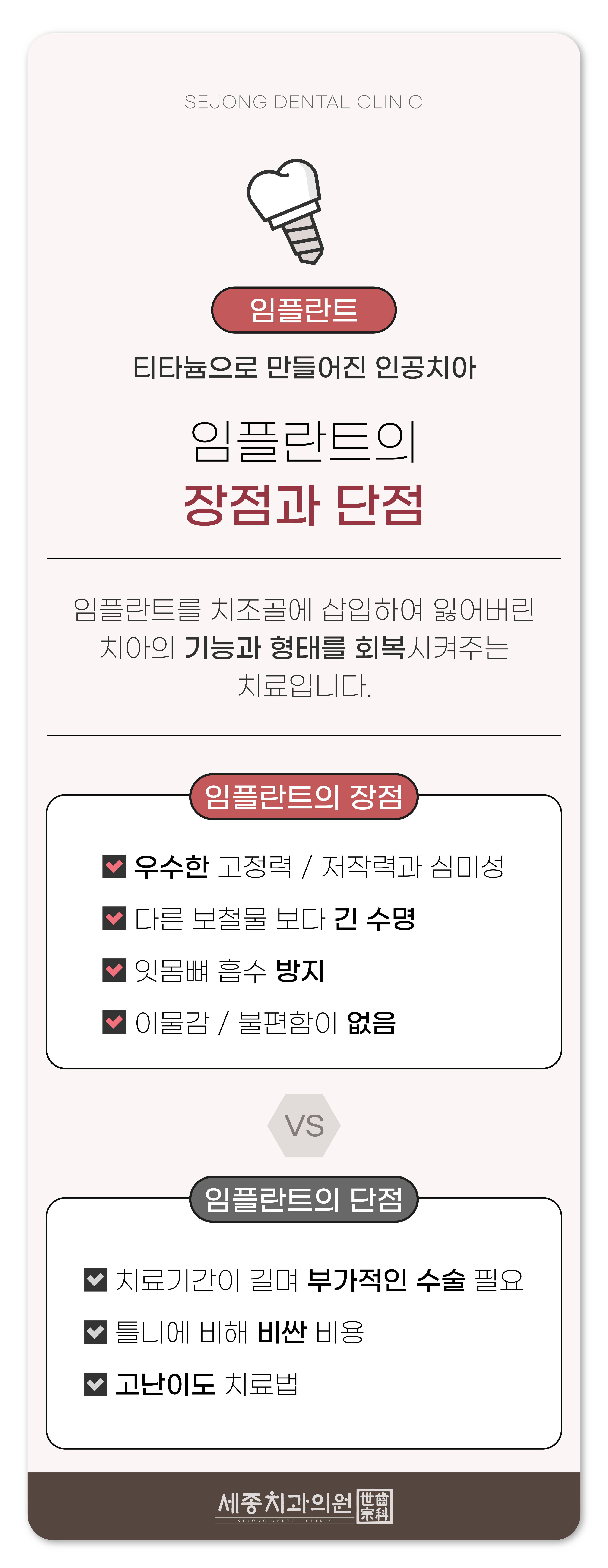 그러나 임플란트는 치료 기간이 길고 치료 비용도 높다는 단점이 있습니다.