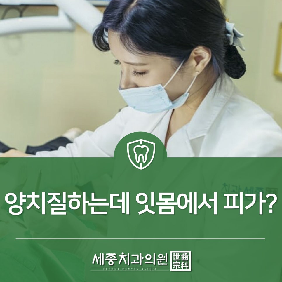 안녕하세요, 부산잇몸치료 세종치과입니다. 양치질을 하다가 치가 나는 경험, 한 번쯤은 경험해 보셨을 건데요. 상처로 인한 출혈이 아닌 잇몸에서 피가 나는 경우에는 구강상태가 나빠졌다는 신호이므로 방치하지 마시고 치과에 내원해 검진과 치료를 받으시길 바랍니다. 잇몸 출혈은 잇몸 염증 잘못된 양치 습관, 건조한 구강상태 등의 원인으로 발생할 수 있습니다. 잇몸출혈의 원인을 부산잇몸치료 세종치과에서 자세히 알려드리겠습니다!