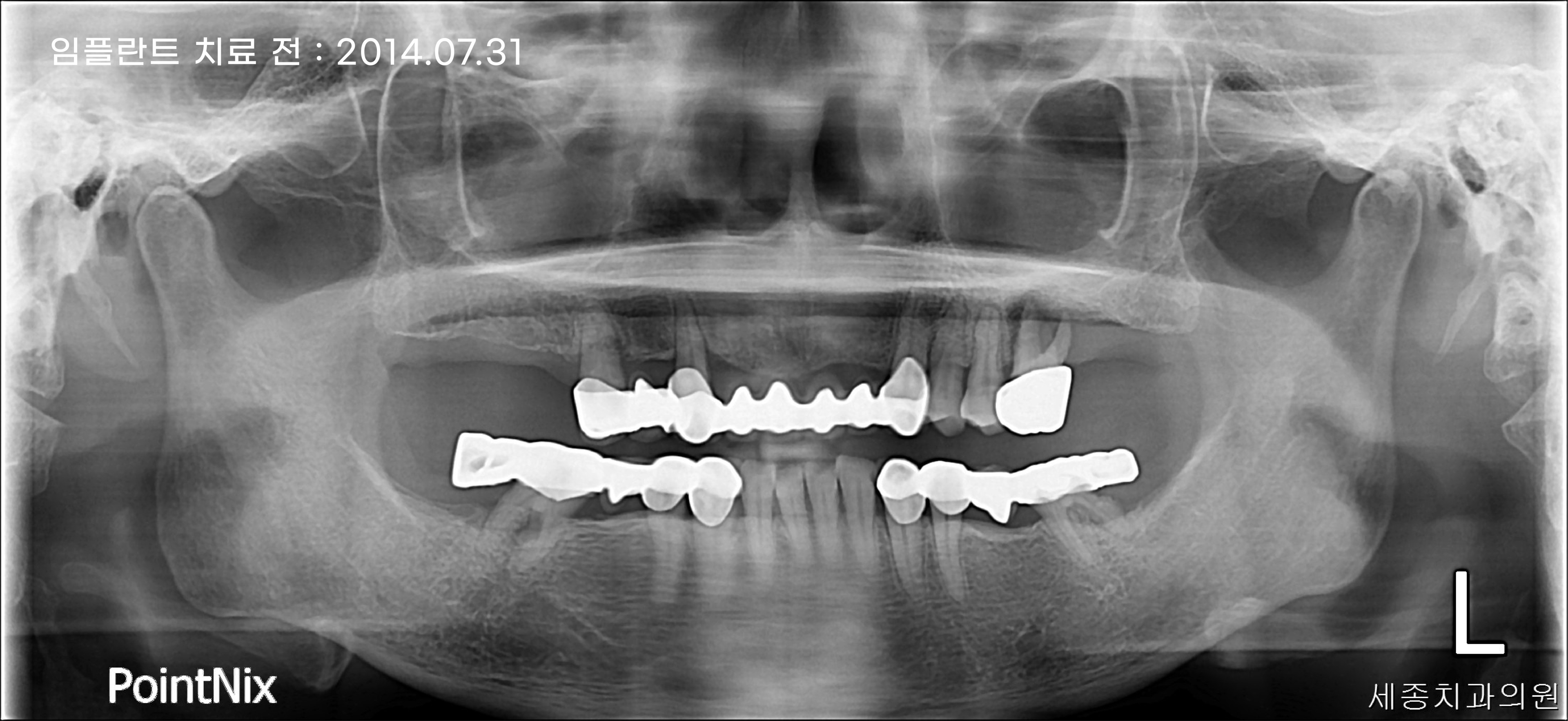 부산임플란트 세종치과 10주년 기념으로 2014년에 내원하신 환자분의 케이스를 통해 브릿지와 임플란트의 장단점을 알아보는 시간을 가져보도록 하겠습니다. 환자분의 경우 첫 내원을 했을 때 치아를 상실한 부위를 치아 브릿지로 치료를 하신 상태였는데요.