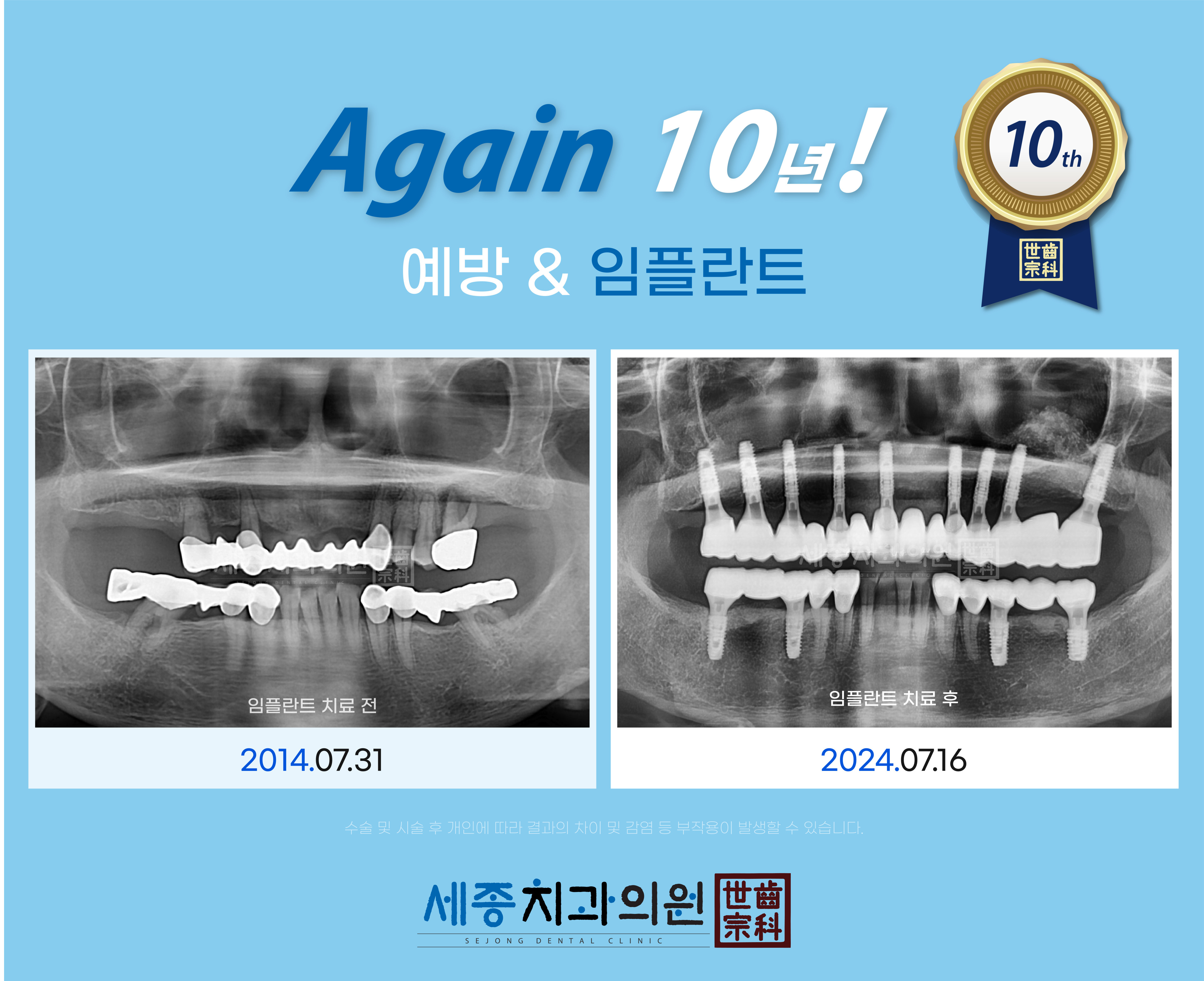 부산임플란트 세종치과는 임플란트 식립 전 / 후로 환자분의 구강을 세심하게 케어하고 있습니다. 부산임플란트 세종치과의 예방 관리 프로그램은 첨단 치과 장비와 체계적이고 다양한 검사 프로그램으로 임플란트 수명을 위협하는 문제점들을 파악하여 임플란트 재수술과 구강질환이 발생하기 전 미리 예방해 드리고 있습니다.