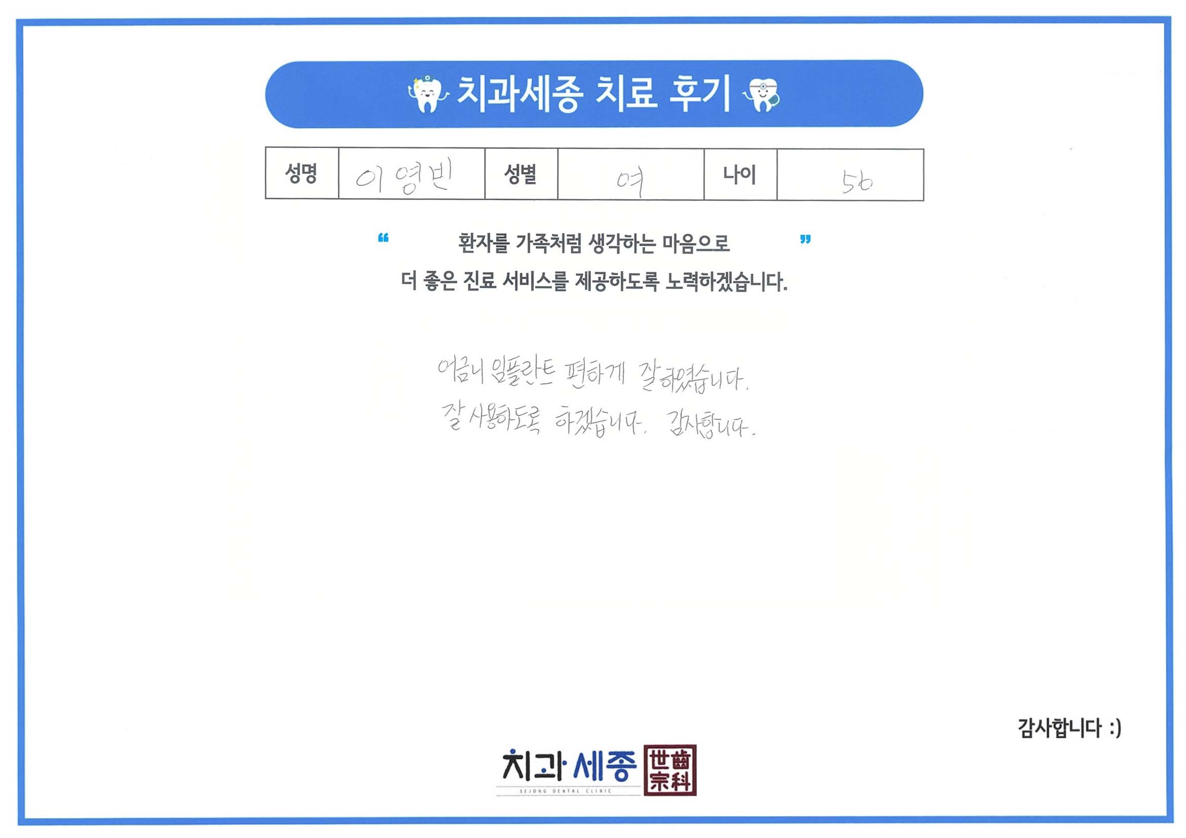 이영빈님의 직접 써주신 치료 종결 후기글입니다