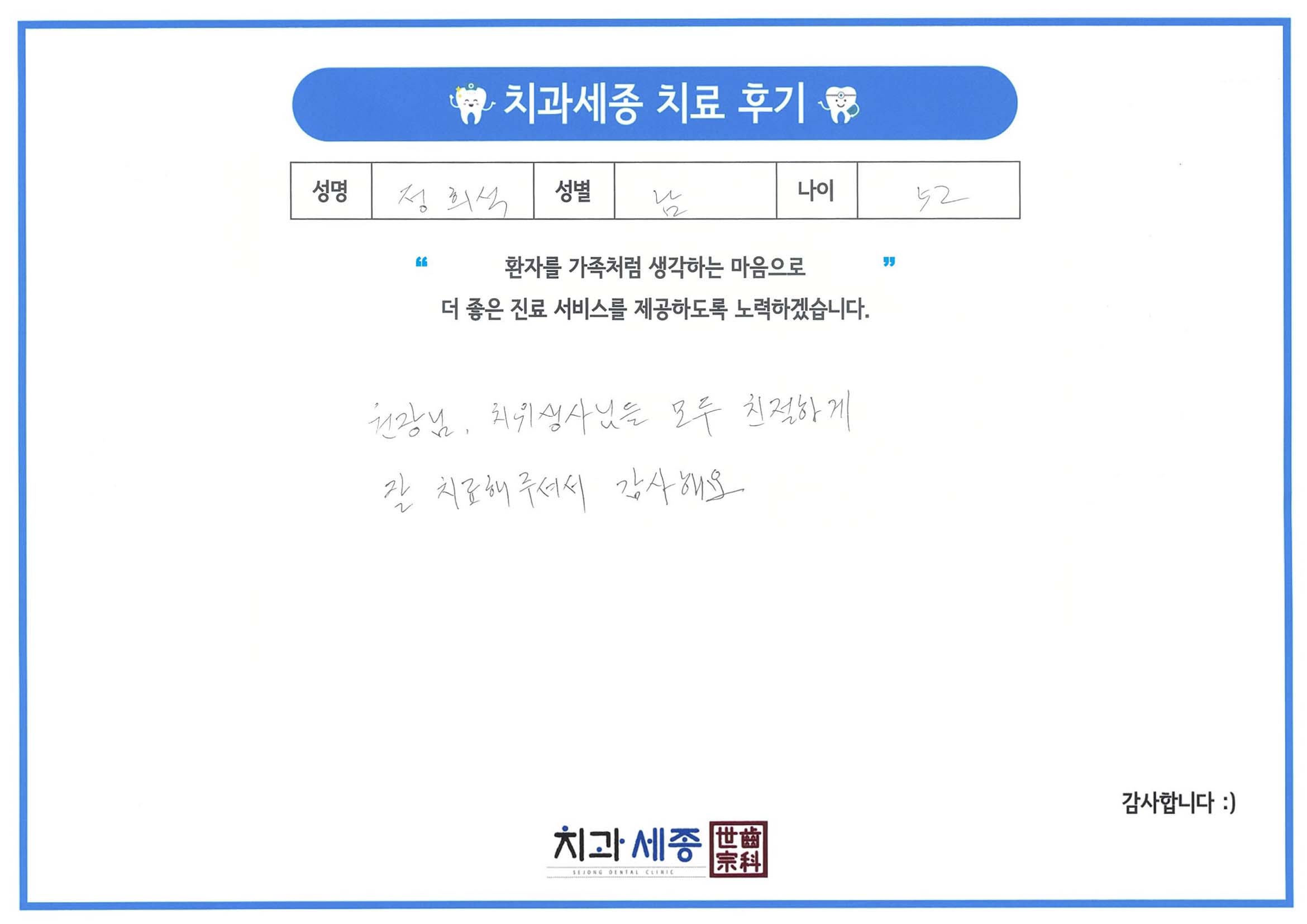 정희석님의 직접 써주신 치료 종결 후기글입니다
