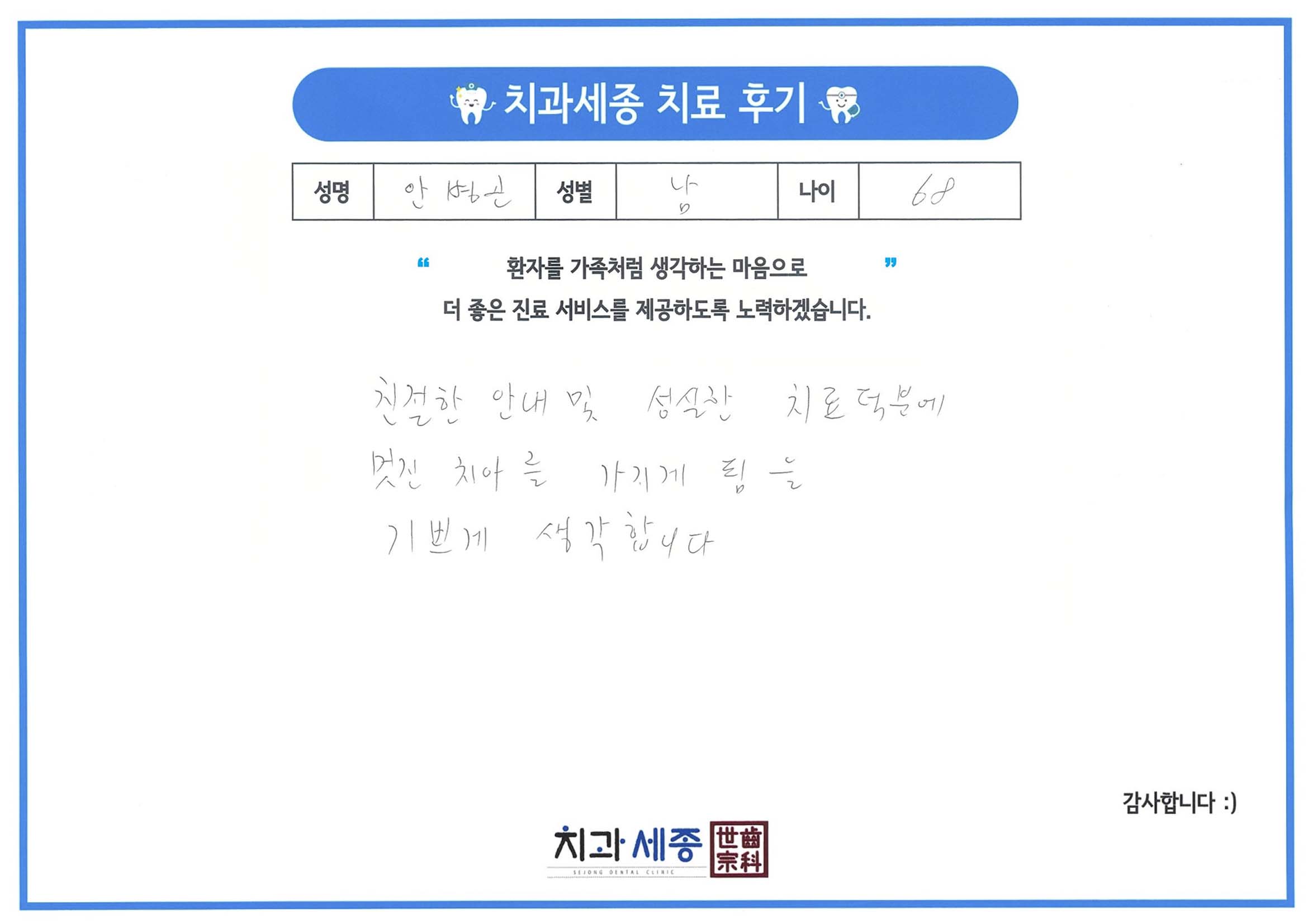 안병곤님의 직접 써주신 치료 종결 후기글입니다