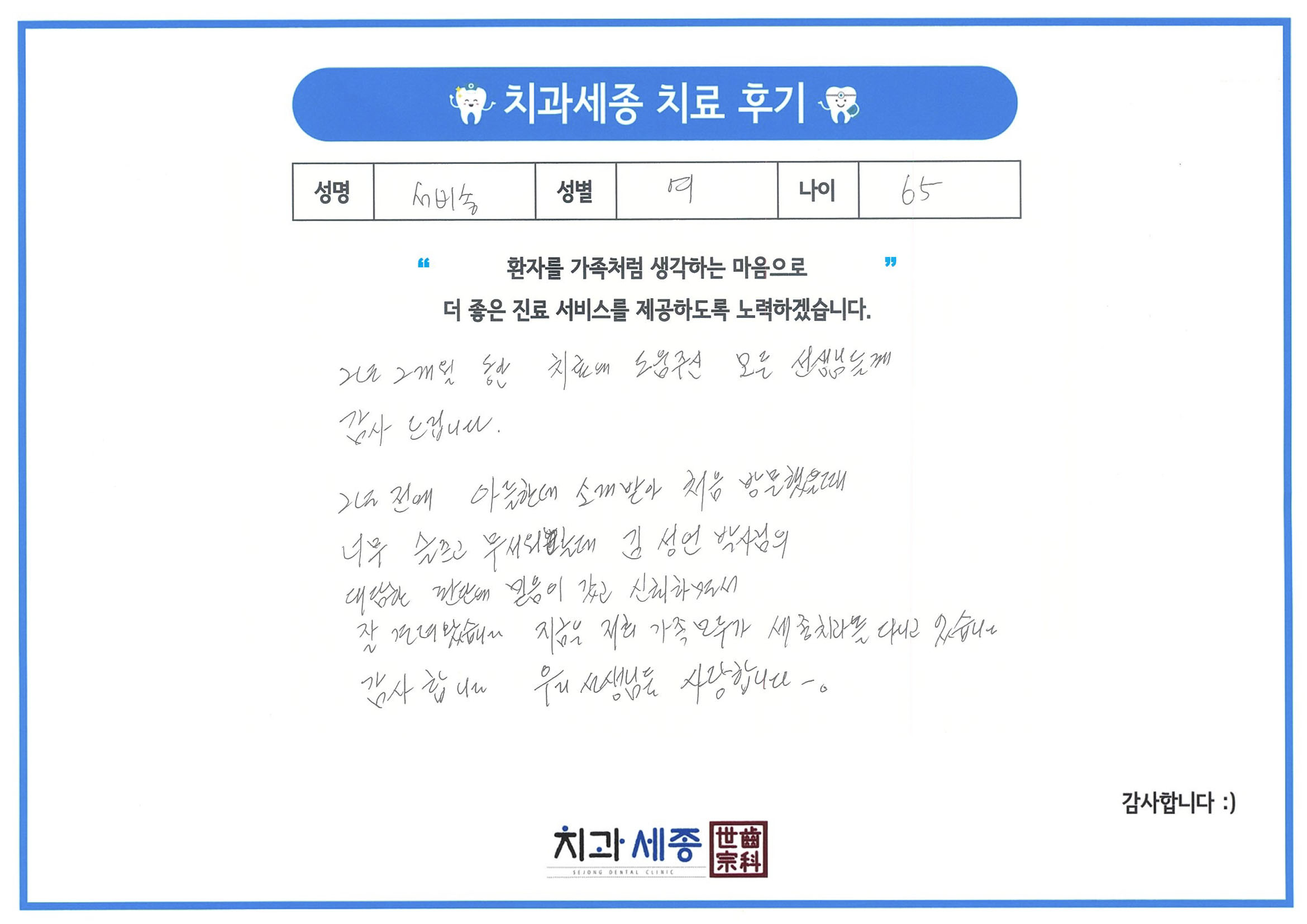 서비송님의 직접 써주신 치료 종결 후기글입니다